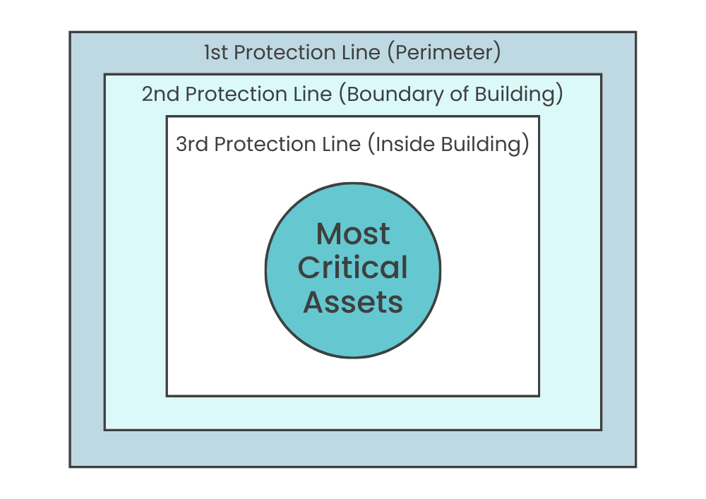 The essence of multi-layered security in critical facilities is placing concentric layers of protection around the most critical assets that must be protected.