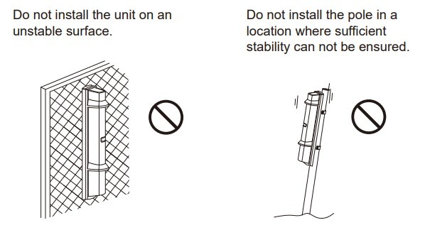 ดังนั้น สำหรับการติดตั้งภายนอกอาคาร ควรพิจารณาตำแหน่งติดตั้งโดยคำนึงถึงการเปลี่ยนแปลงของสภาพแวดล้อมในอนาคต เช่น การเติบโตของพืช และการปรับปรุงพื้นที่